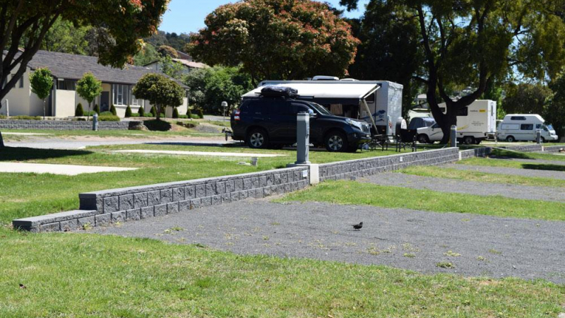 Level with fine crushed blue metal with some grass. Each site has power, water & sullage. All sites are centrally located to park facilities.