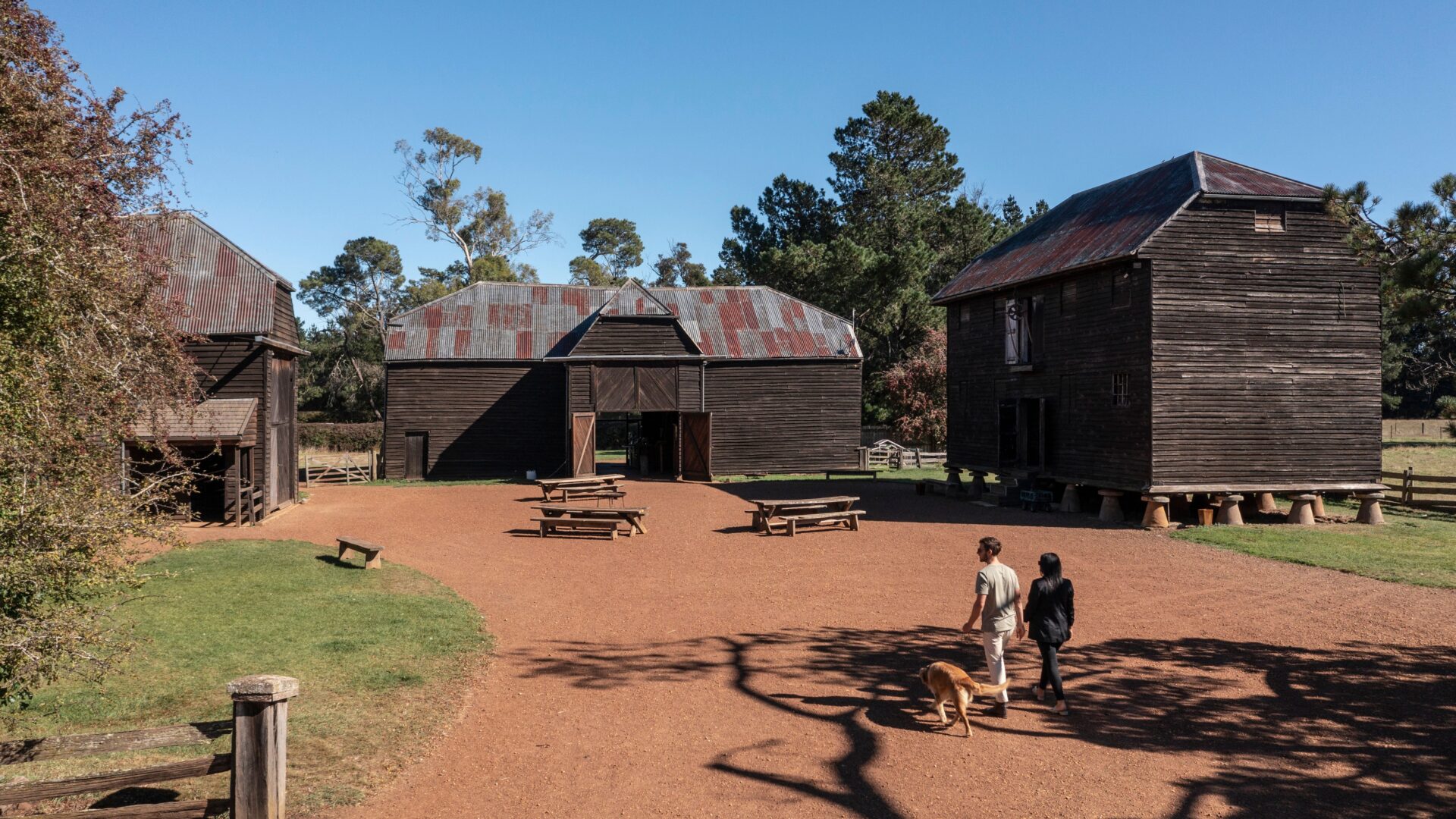 Visitors can explore original farm buildings, convict-built cottages, barns, and gardens, all still set within a working rural property. The estate remains a living farm today, giving guests a unique opportunity to see history alongside ongoing agricultural activity.